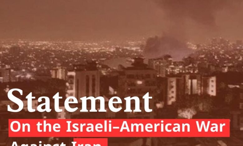The war against Iran launched yesterday by Israel and the United States marks a dangerous escalation in the Middle East, threatening to engulf the entire region in deeper instability, destruction, and wider conflict. This assault does not stand alone. It follows the devastation of Gaza and the continued expansion in the West Bank, sustained by political and military backing that has normalized impunity and collective punishment.